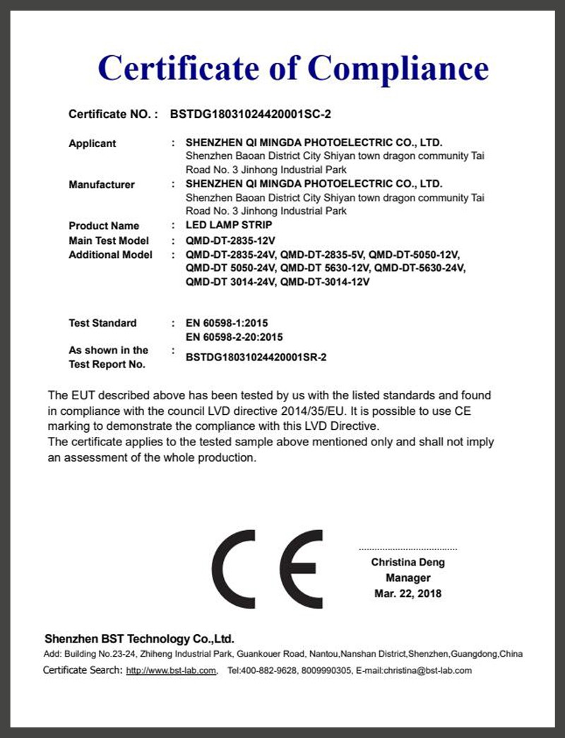 Products have passed UL, ETL, CE, IEC62471 and other certifications. Products are widely used in machinery and equipment, beauty, furniture, hotel decoration, outdoor lighting, commercial lighting and other fields